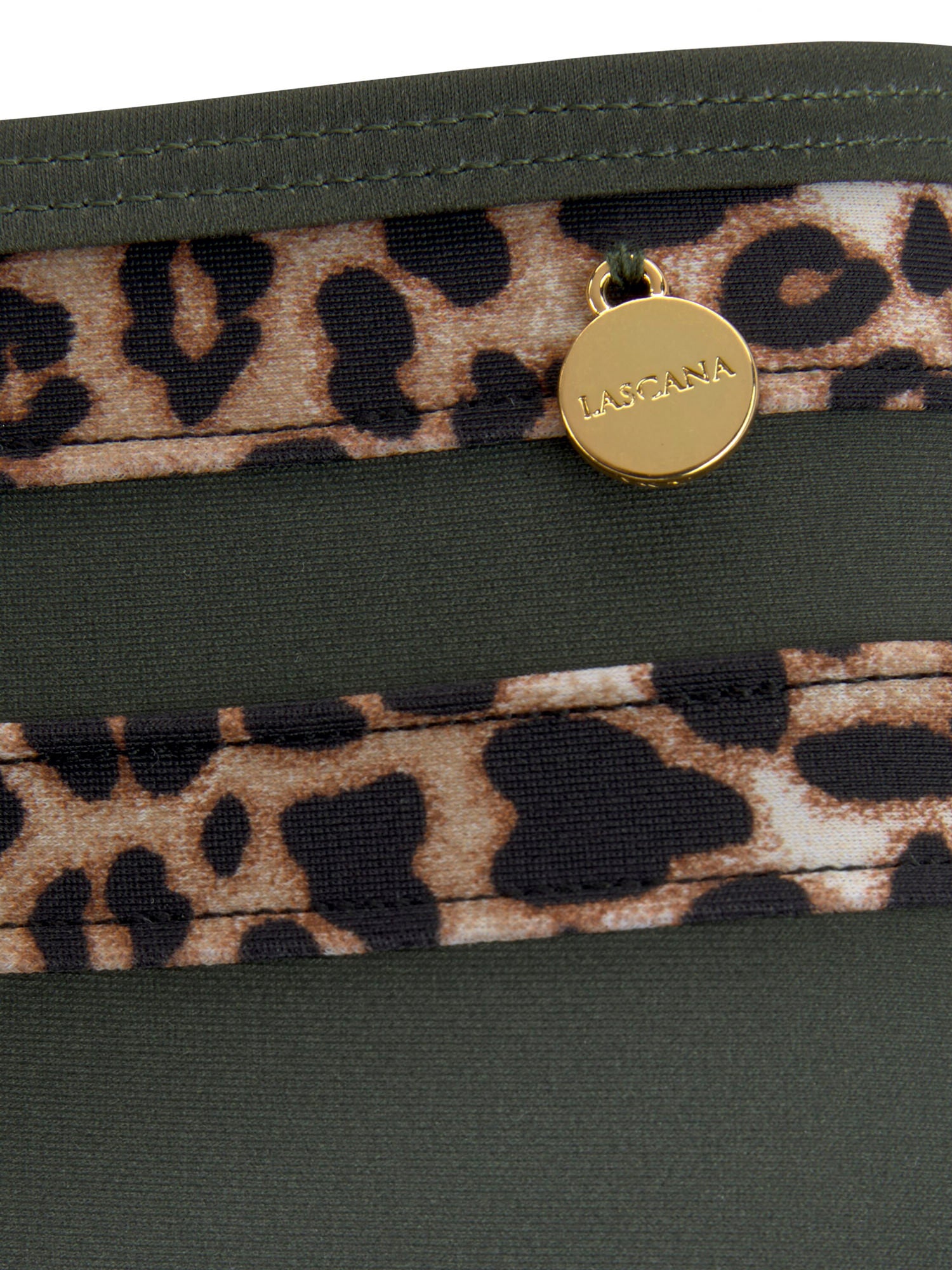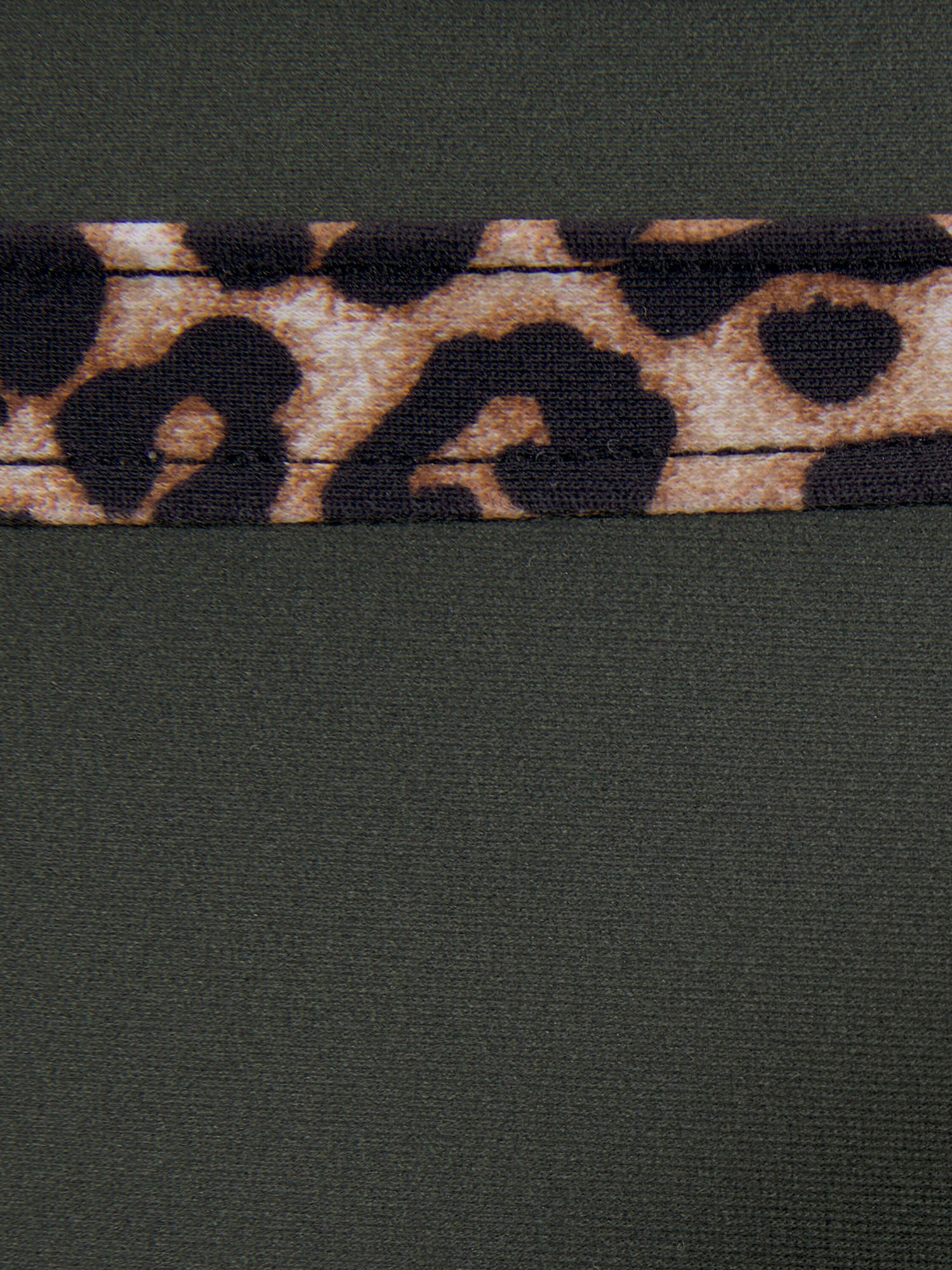 Deux fins passepoils au motif léopard décorent la taille, conférant une allure époustouflante.