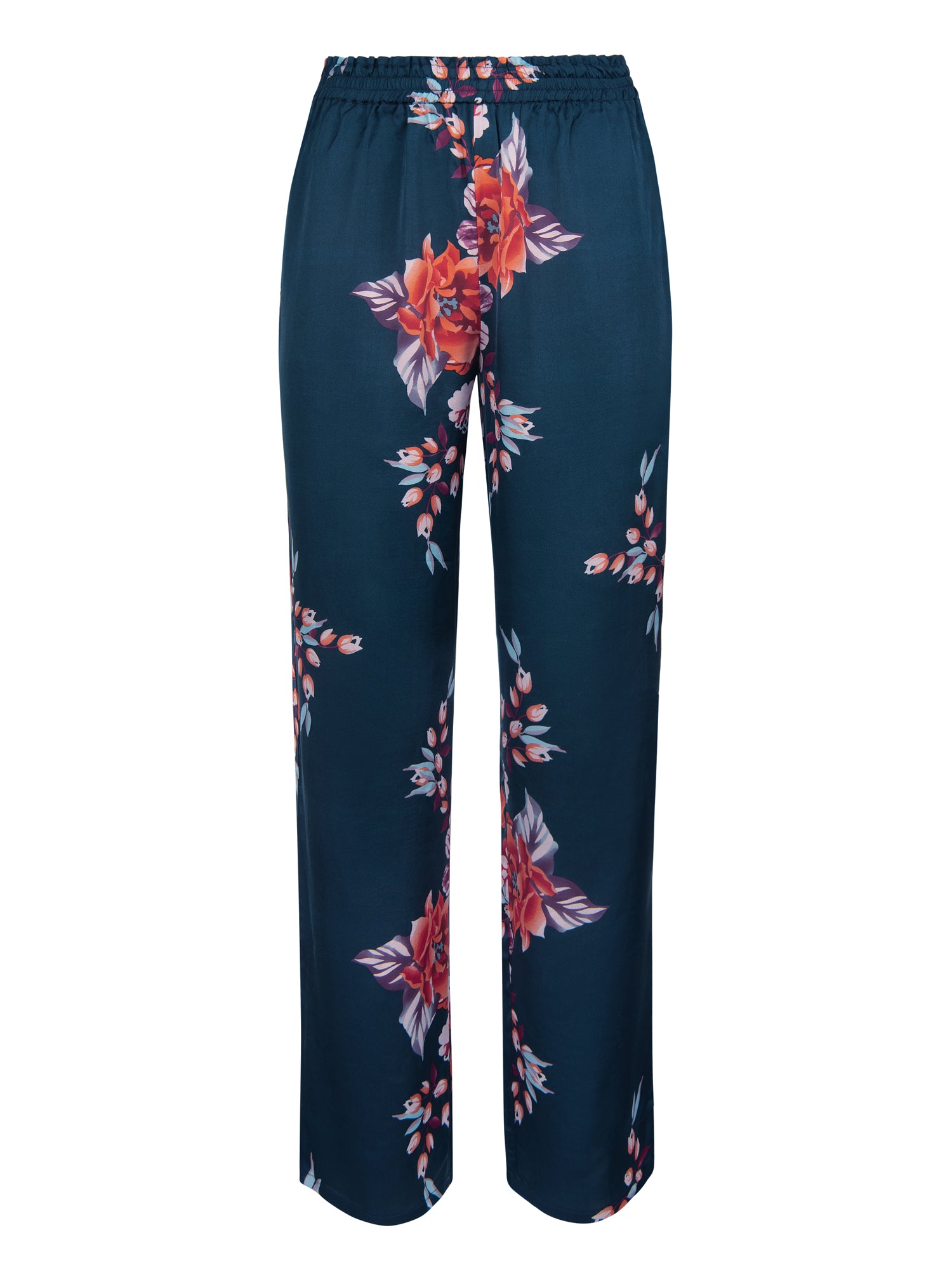 Motif floral unique : Chaque pièce est unique grâce à l'imprimé floral multicolore positionné différemment sur chaque pantalon. La base bleu foncé et les motifs floraux s'harmonisent facilement avec divers styles.