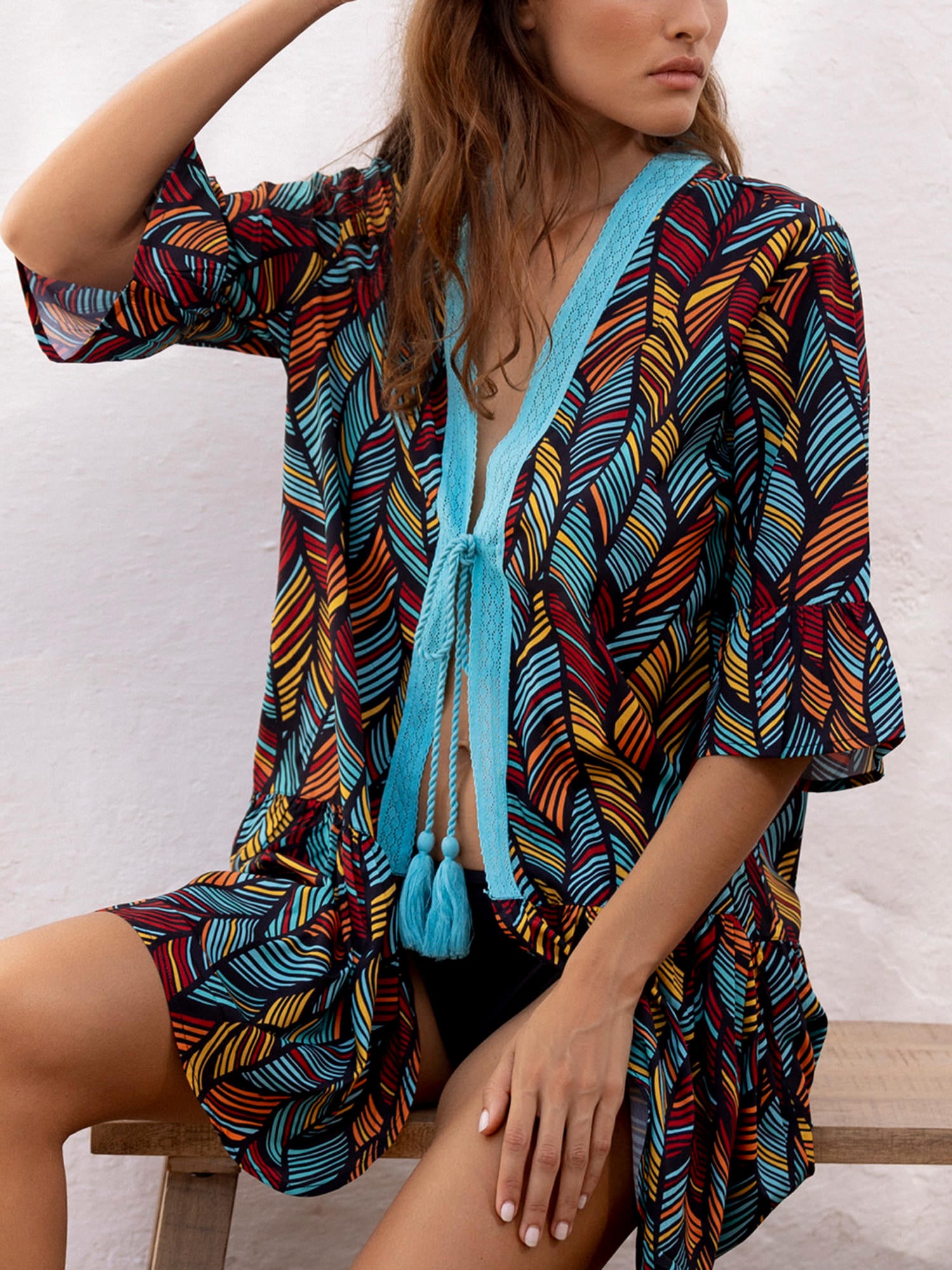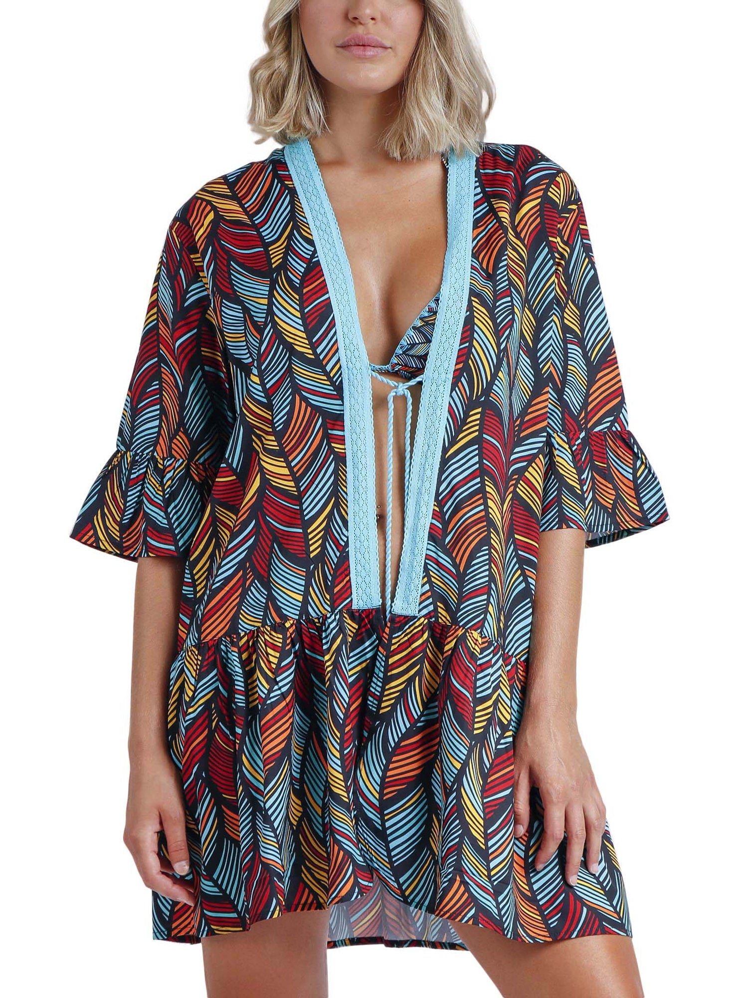 Caftan de Plage Ethnic Feathers - Marque Admas