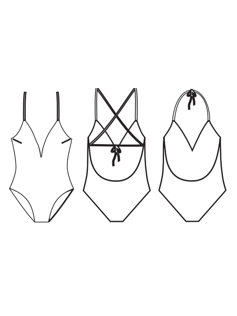 Maillot de bain une pièce avec bonnets triangulaires préformés pour mettre en valeur la poitrine.