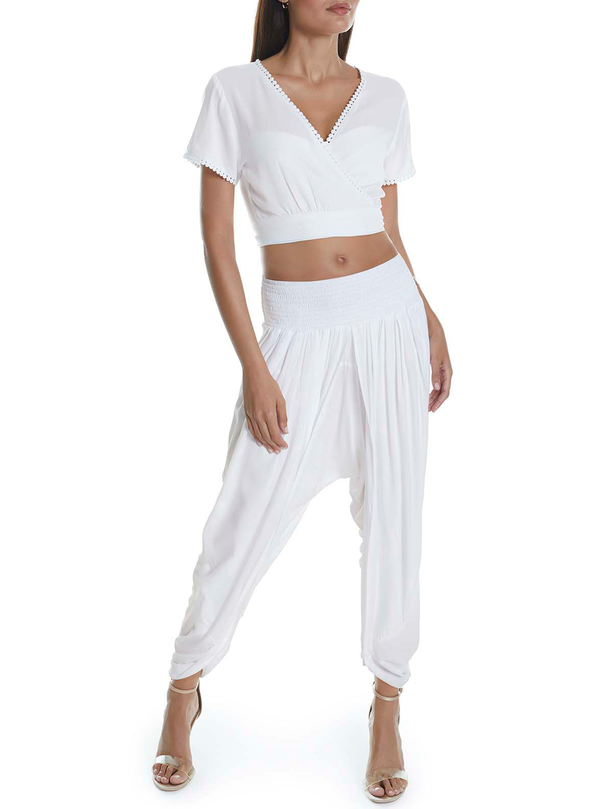 Veuillez noter que le pantalon sarouel est vendu seul. Le top, le maillot de bain, les bijoux et autres accessoires portés par le mannequin sur les photos ne sont pas inclus.