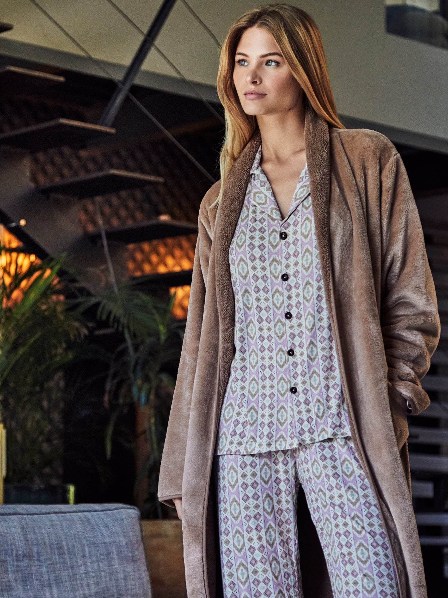 Ce pyjama pantalon et chemise à manches longues de la collection ETNICA est parfait pour vous accompagner lors des nuits fraîches ou des moments cocooning. Grâce à son tissu en viscose mélangée, il vous offre confort et style dans un ensemble chic et intemporel. Un indispensable de votre garde-robe de nuit.
