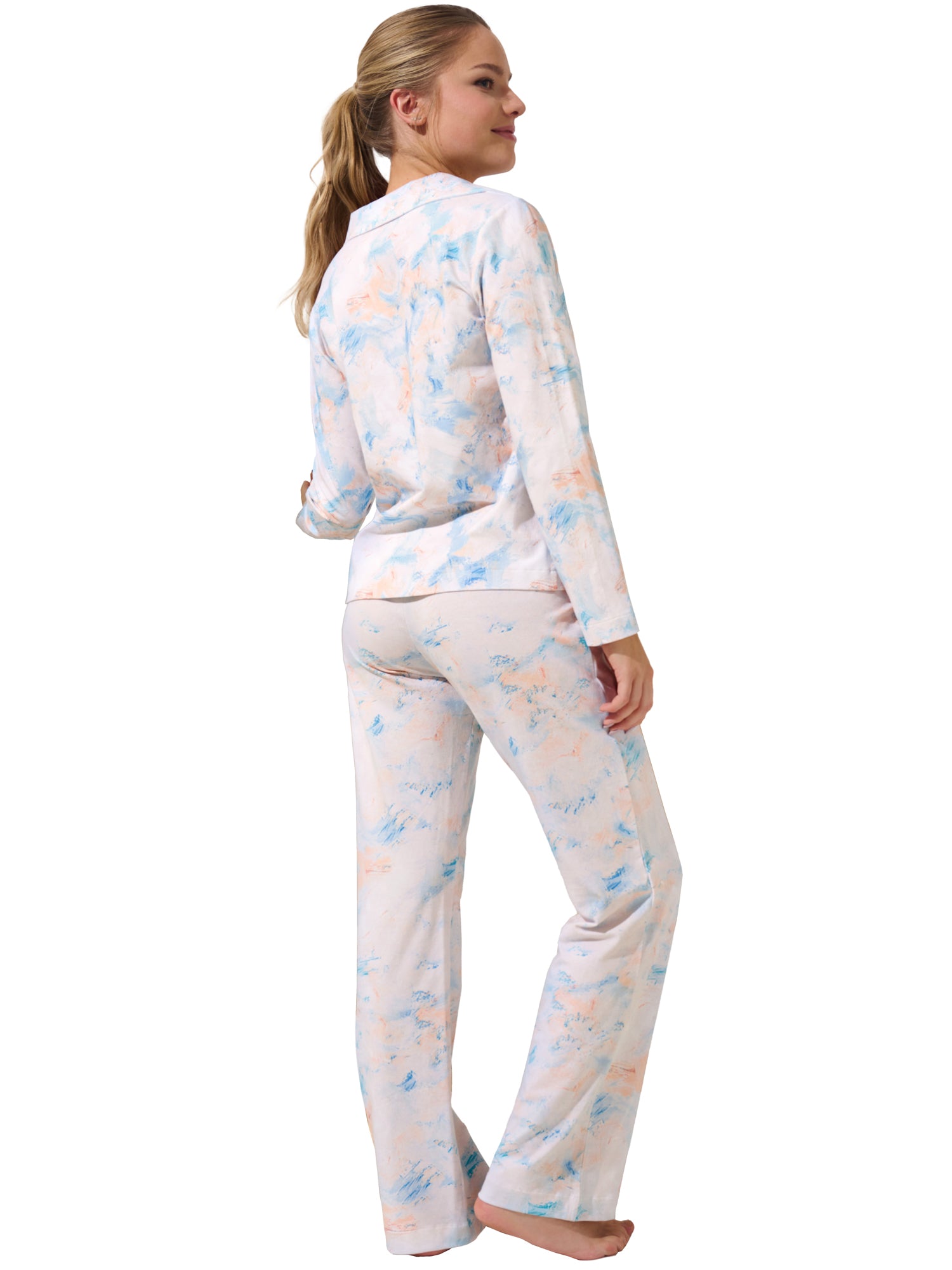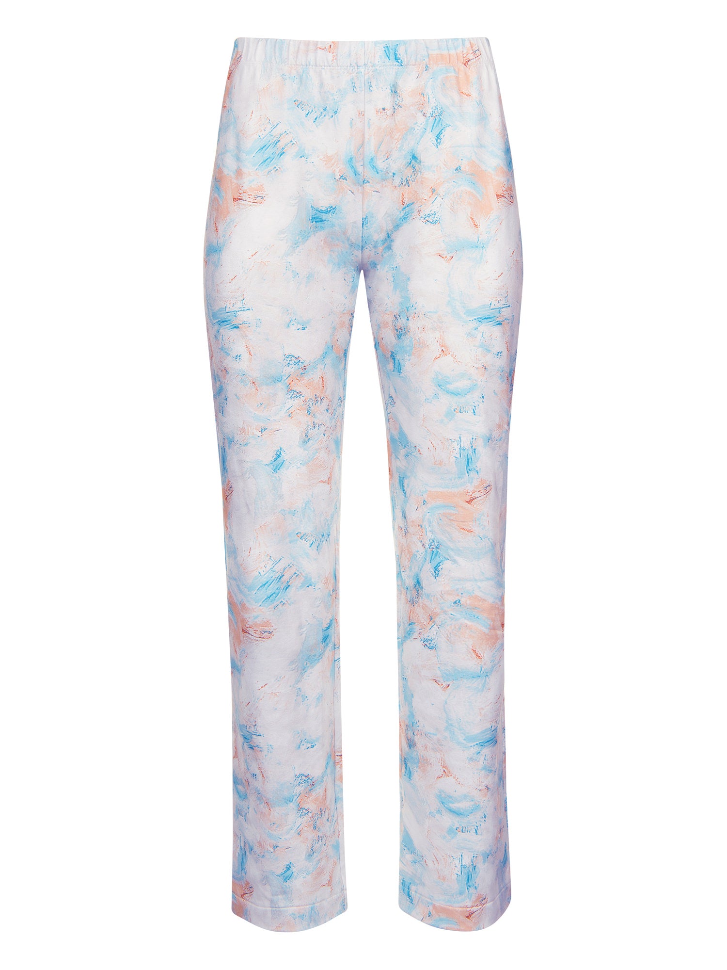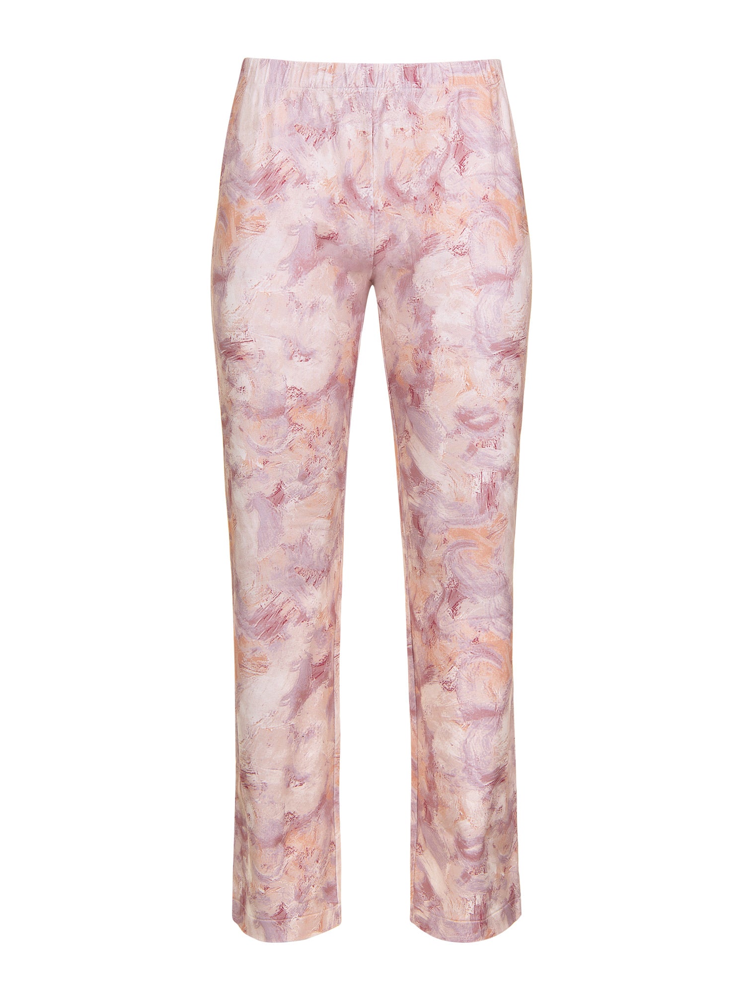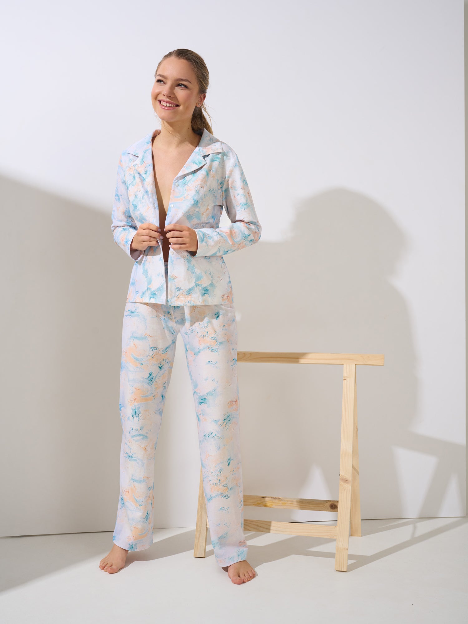 Cet ensemble de pyjama de la collection Olena par Lisca se distingue par ses motifs abstraits modernes et son design confortable. Il se compose d'une chemise boutonnée à manches longues et d'un pantalon long et large, idéal pour des nuits paisibles et stylées. La ceinture élastique large du pantalon assure un confort optimal, tandis que la matière douce et tombante offre une agréable sensation sur la peau.