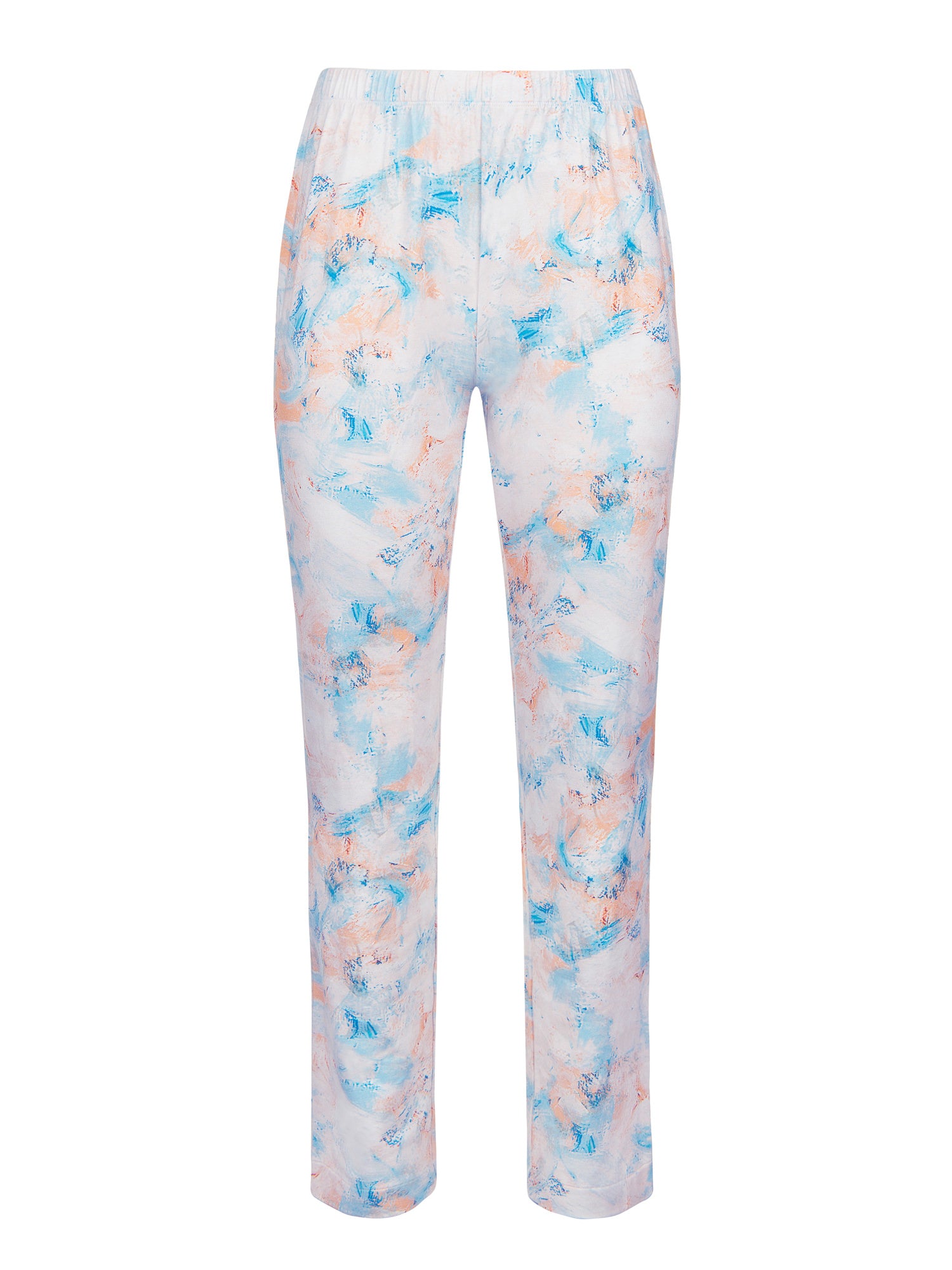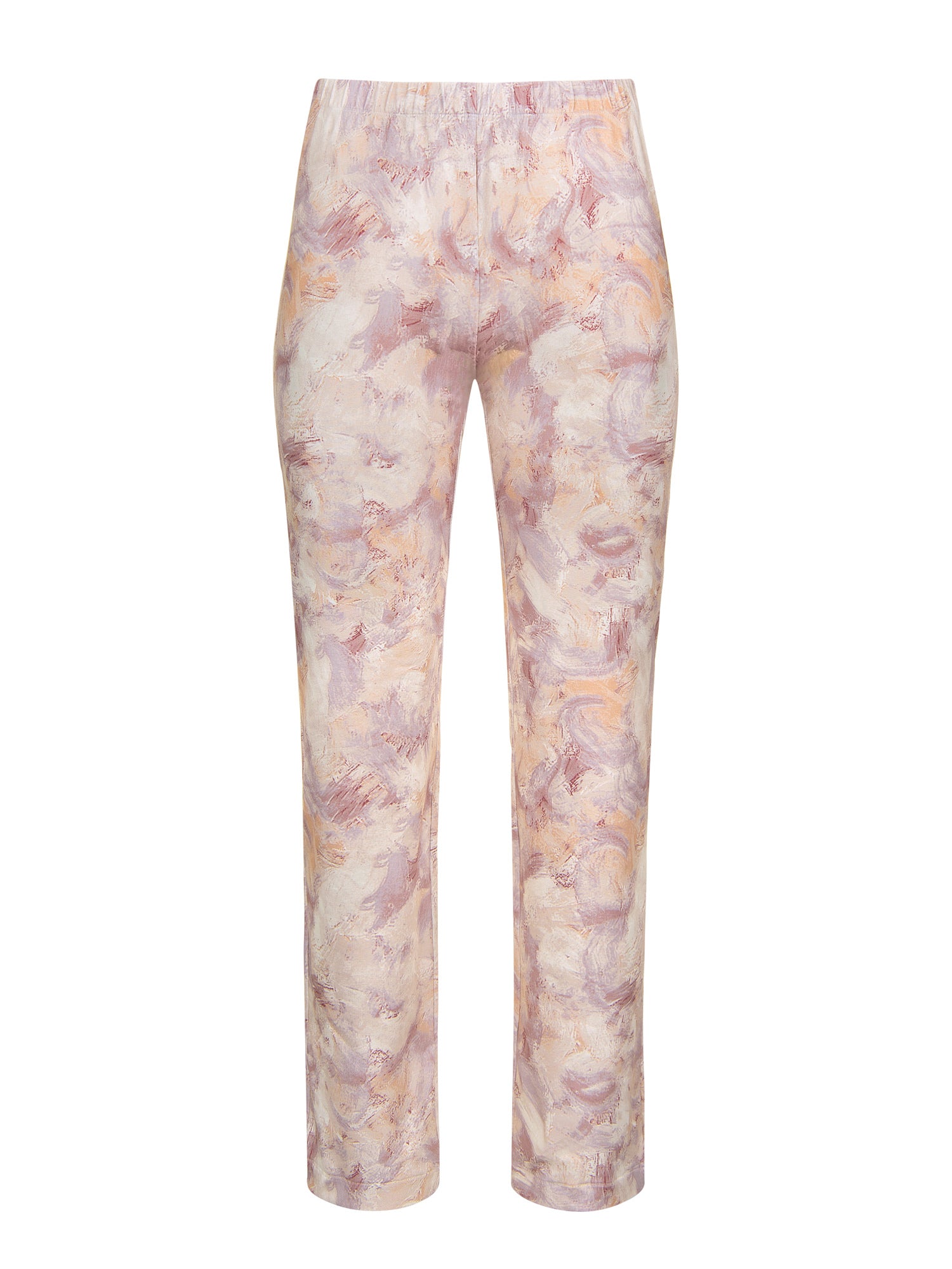 - Pantalon à coupe droite avec imprimé abstrait moderne rappelant des coups de pinceau de différentes couleurs.