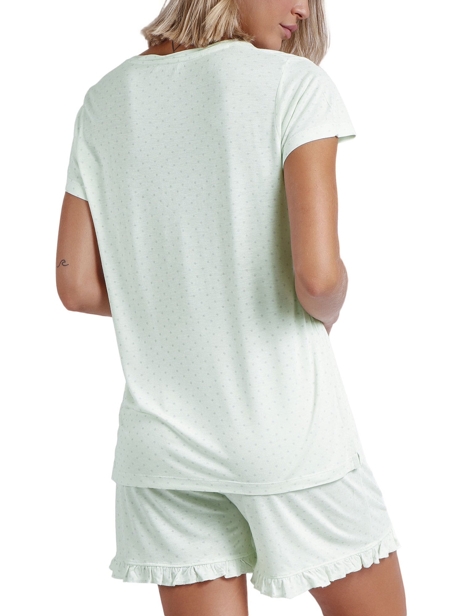 - Cet ensemble de nuit, composé d'un short et d'un t-shirt, est confectionné en viscose douce et légère, idéale pour des nuits agréables et confortables pendant les saisons plus chaudes.