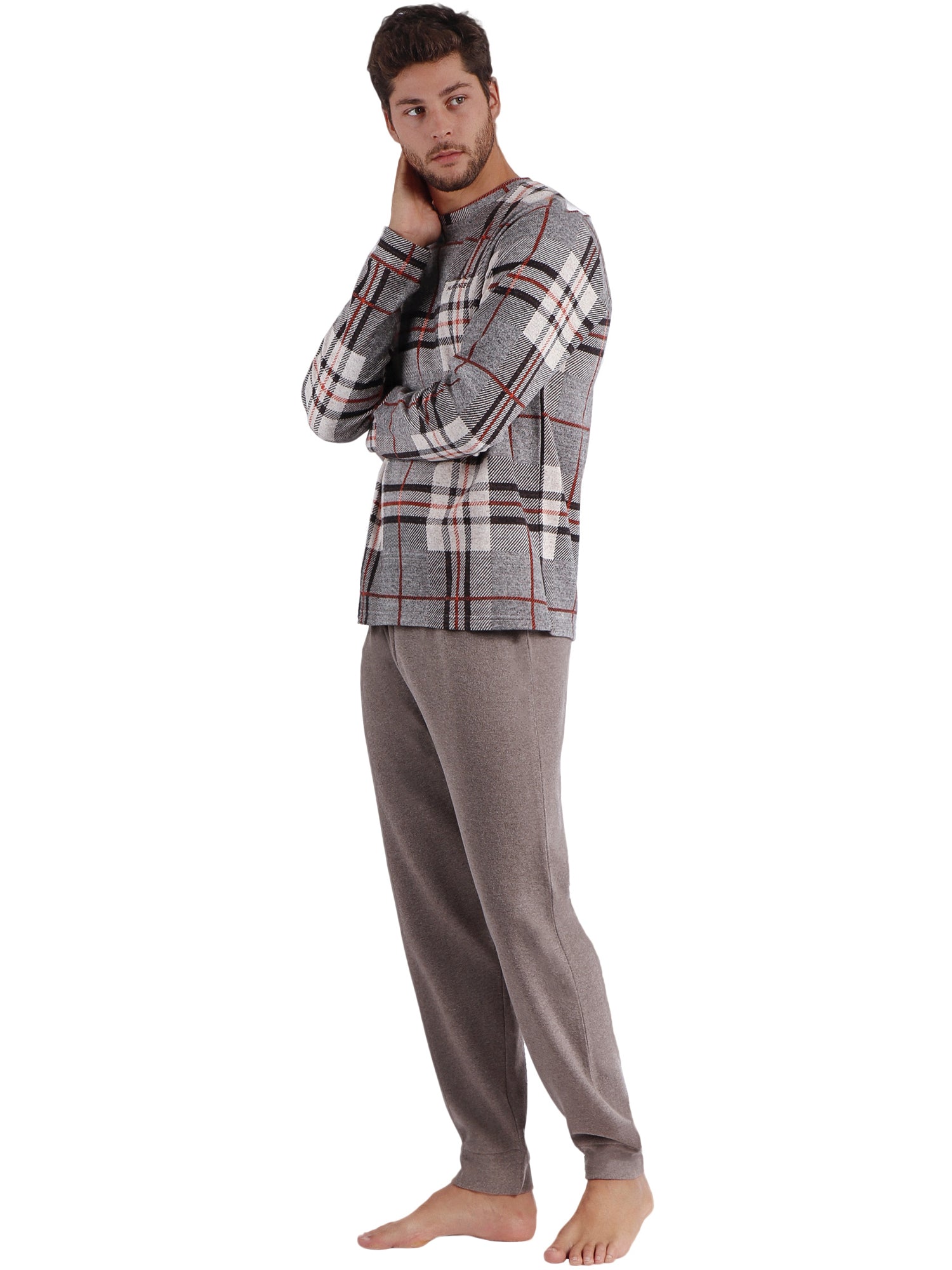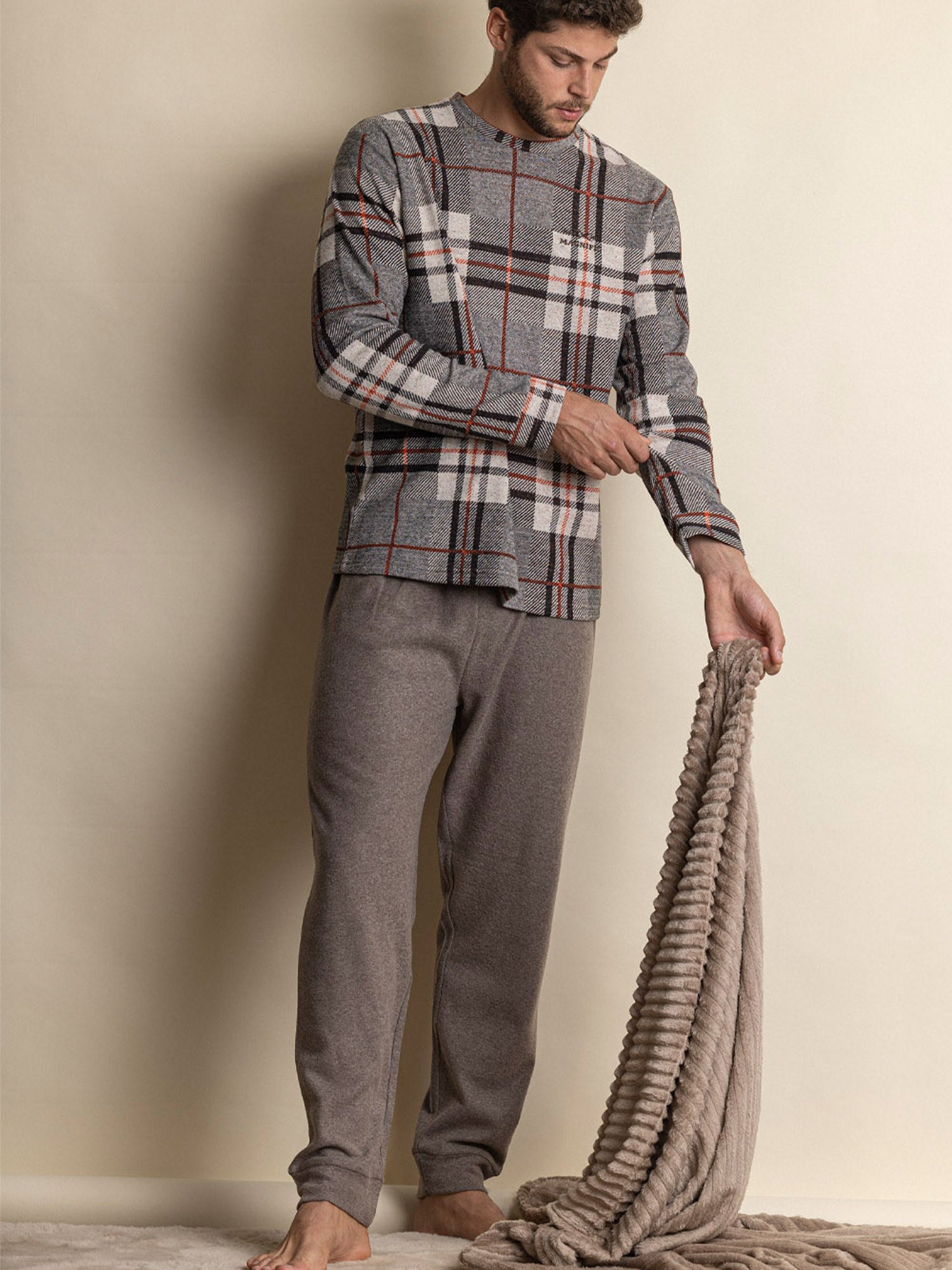 Pyjama tenue d'intérieur pantalon et haut manches longues Tartan Admas