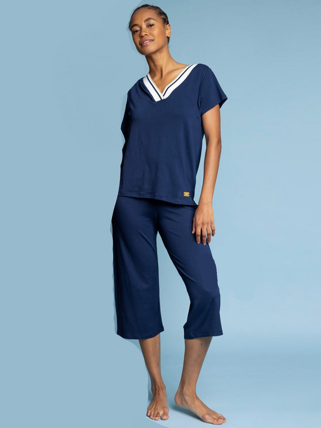 Pyjama tenue d'intérieur pantalon palazzo t-shirt Trip Admas