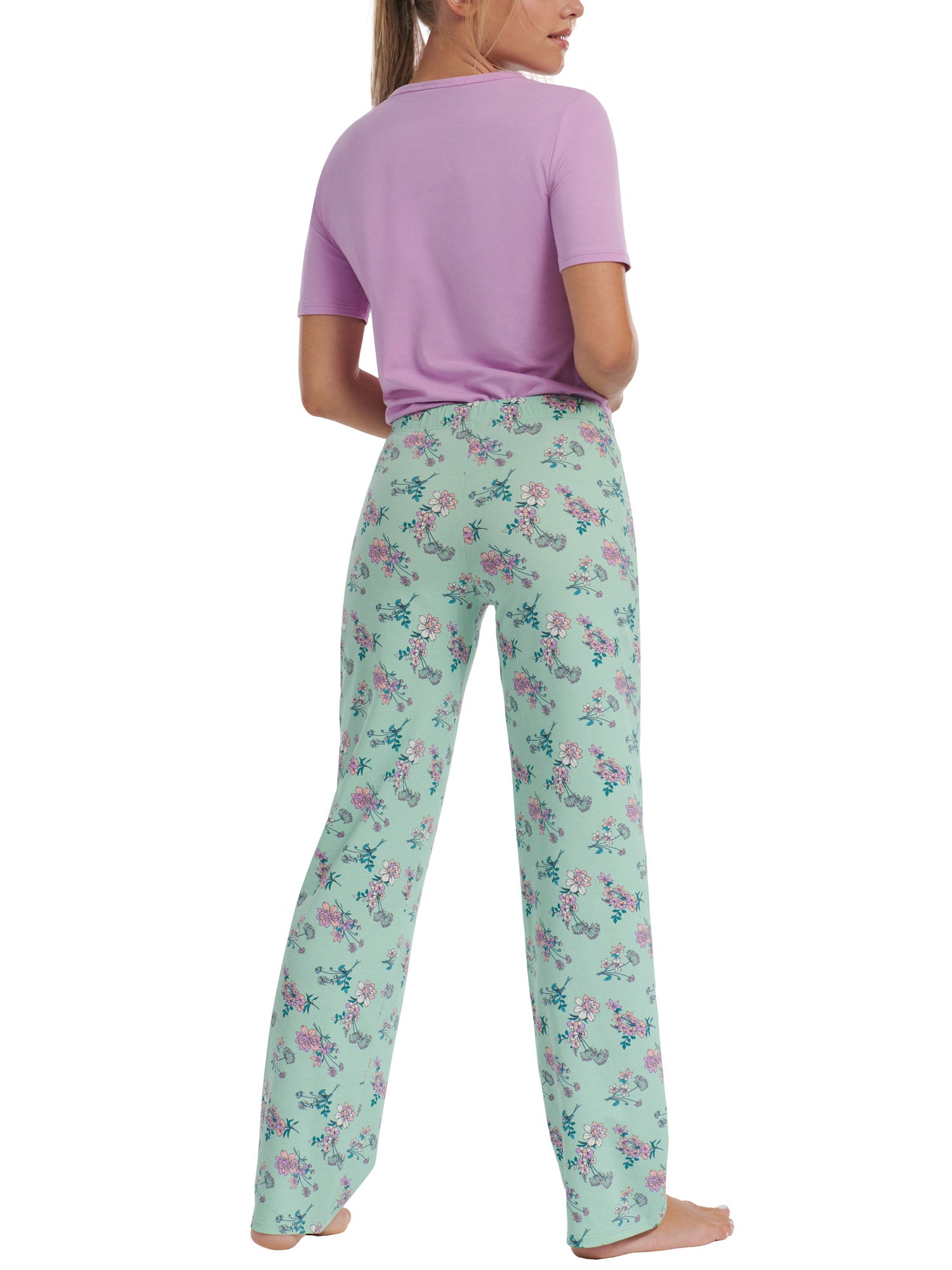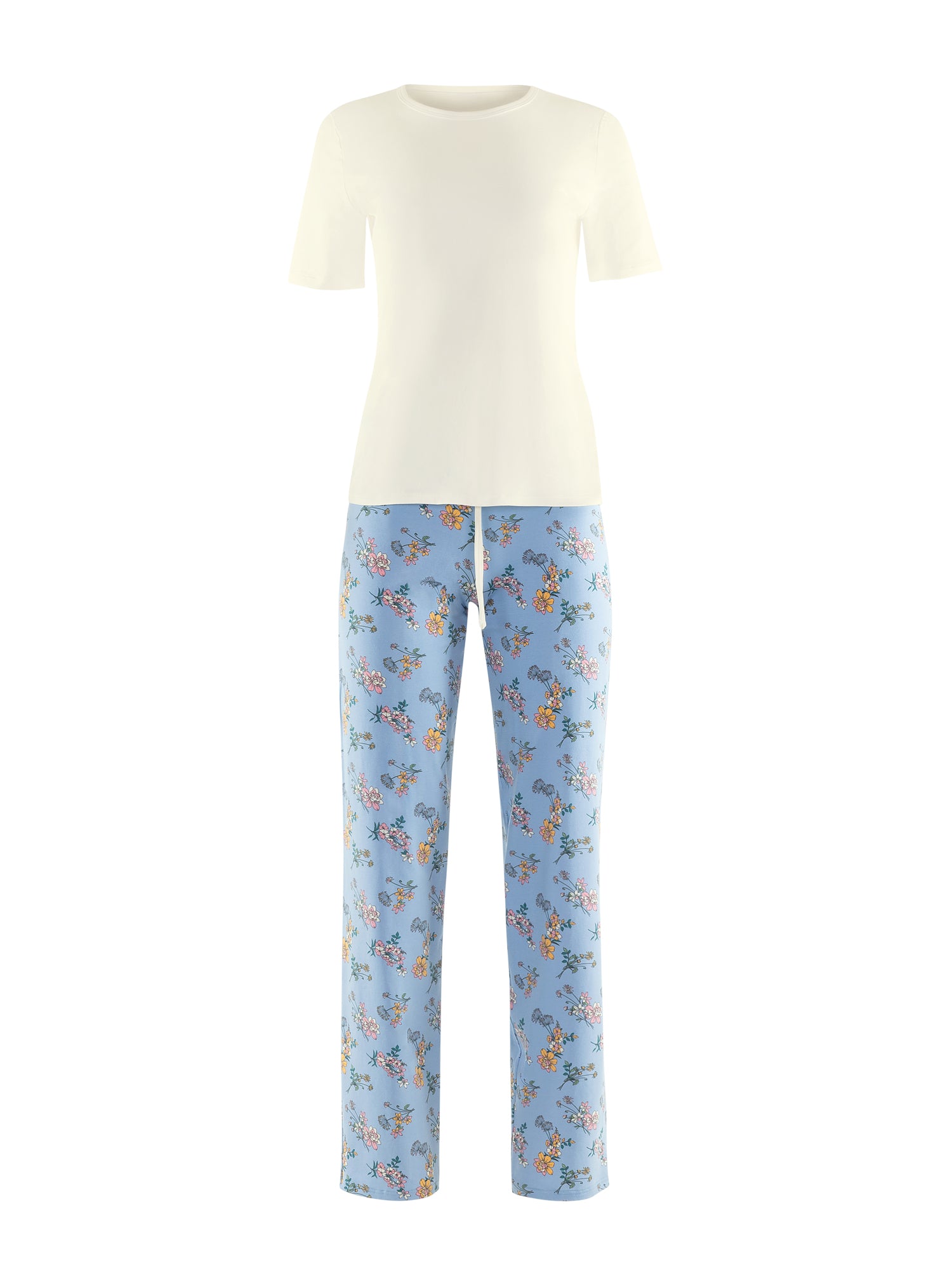 - Pantalon long à coupe large, doté d'un motif floral éclatant, apportant une touche de fraîcheur à votre look nocturne.