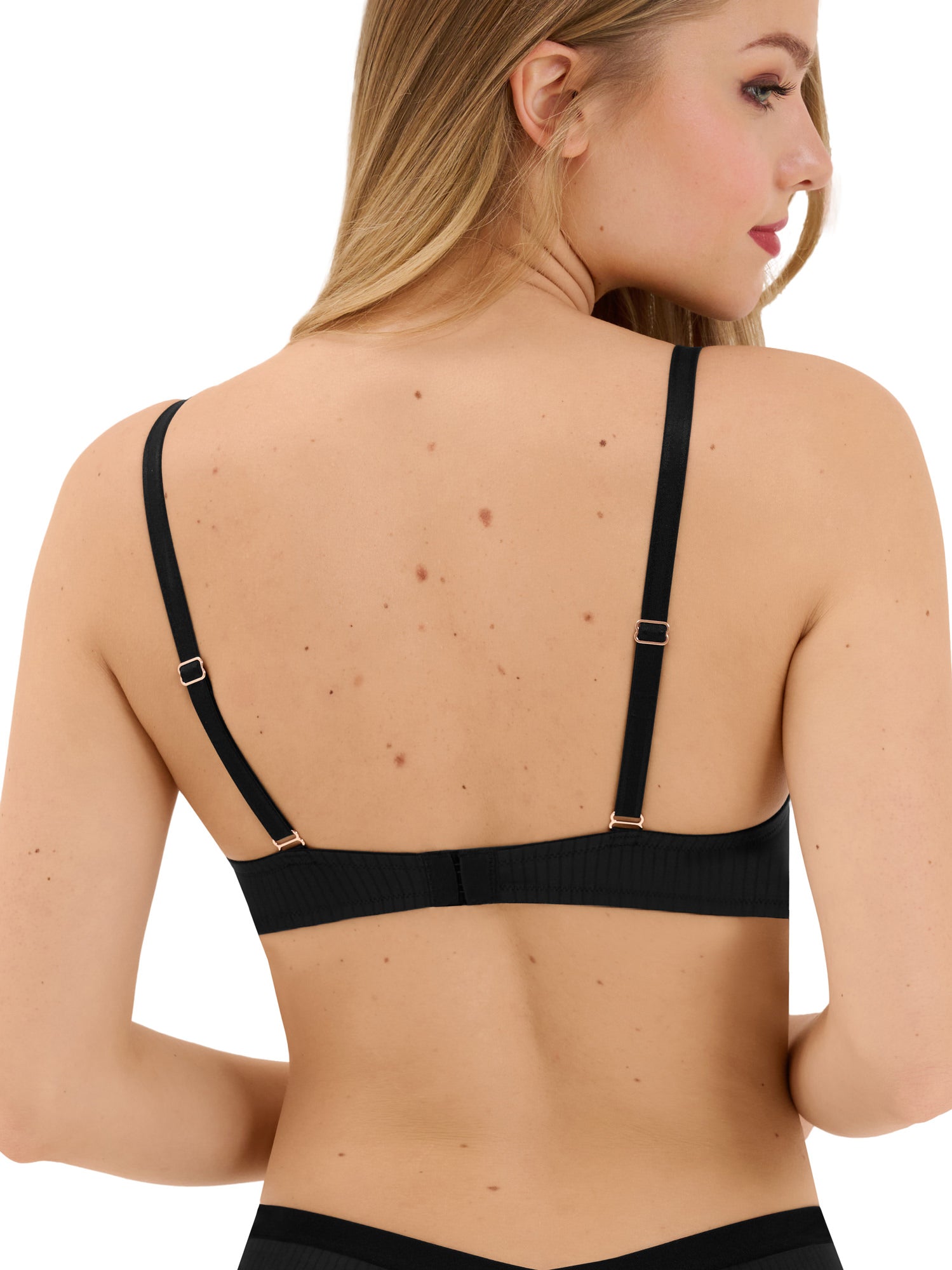 Décolleté droit et rembourrage push-up intégré : Le soutien-gorge est doté d'un décolleté droit pour mettre en valeur la poitrine, avec un rembourrage push-up intégré pour un effet galbant et un décolleté plus généreux.