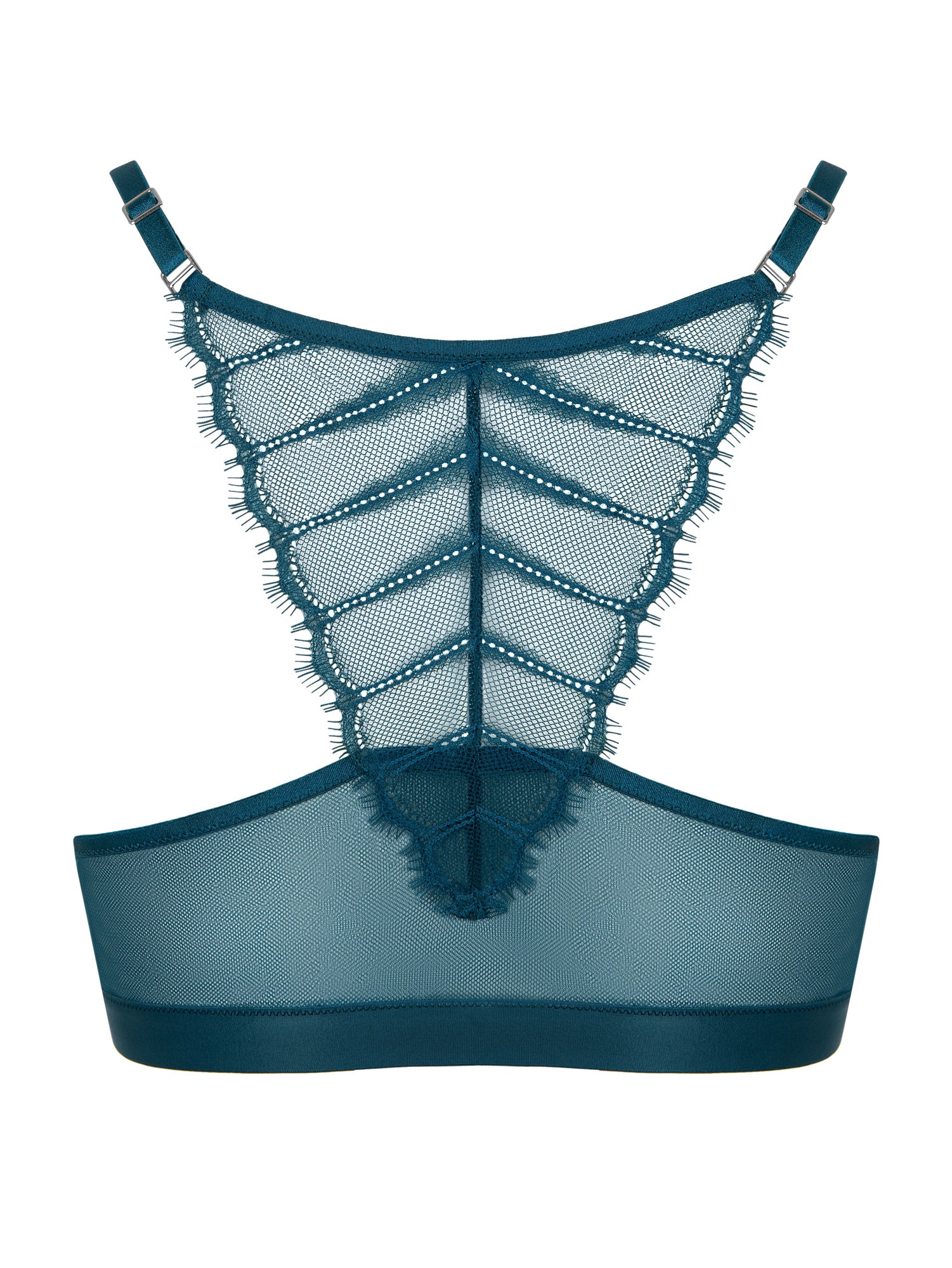 - Élastique décoratif dans le décolleté et insert en dentelle au-dessus des bonnets, pour une allure moderne et raffinée.