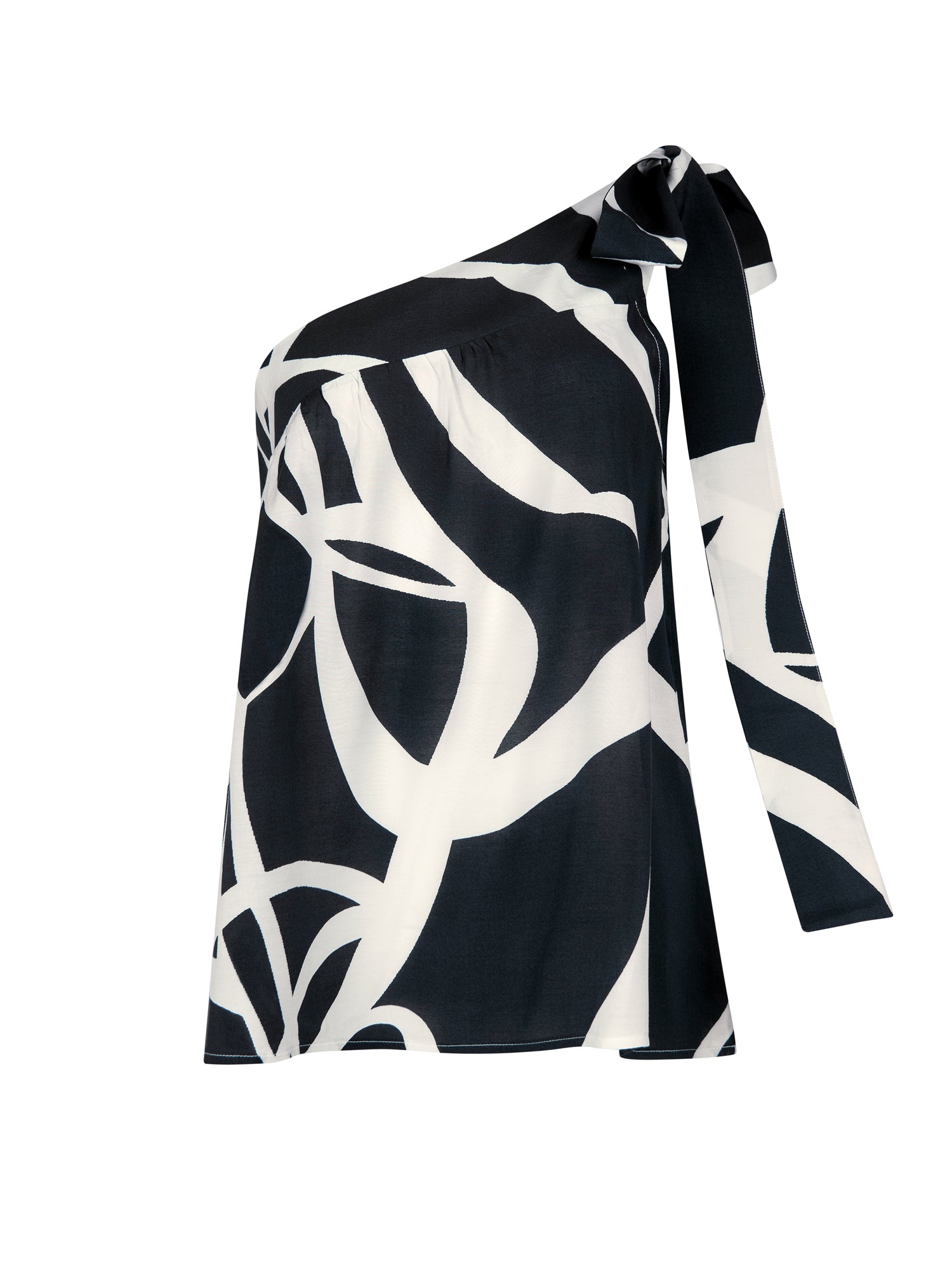 Top asymétrique avec fermeture à nouer sur une épaule.